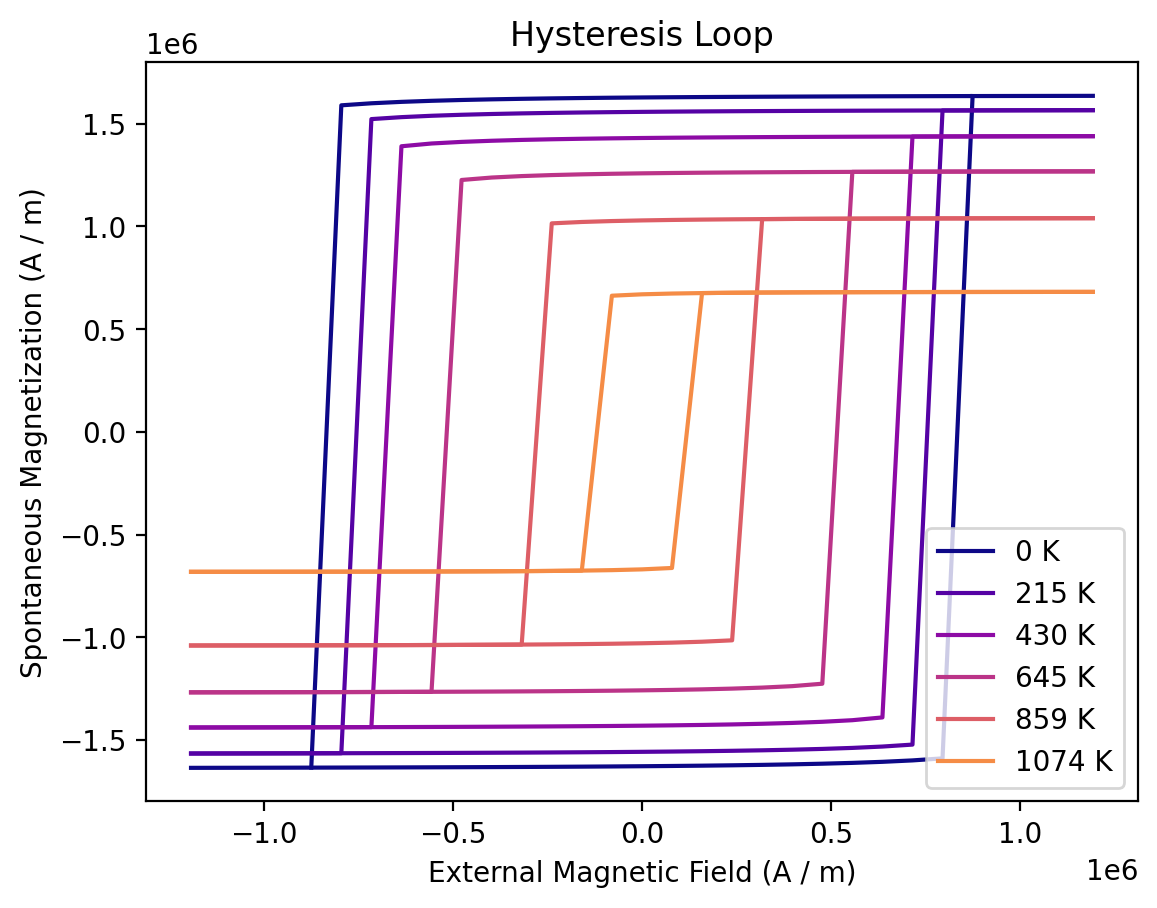 First, we run hysteresis simulations at 7 different temperatures and collect all simulation results: