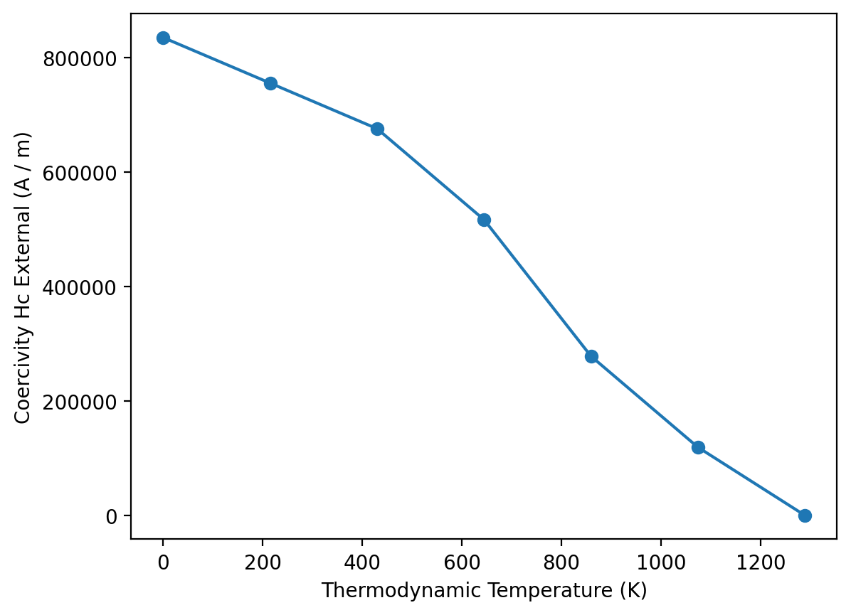 We can leverage mammos to calculate Hc(T) for multiple values of T.