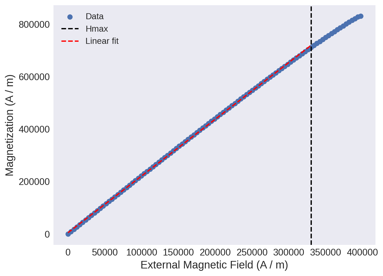 Use mammos-analysis to find the properties of the linearized hysteresis loop.